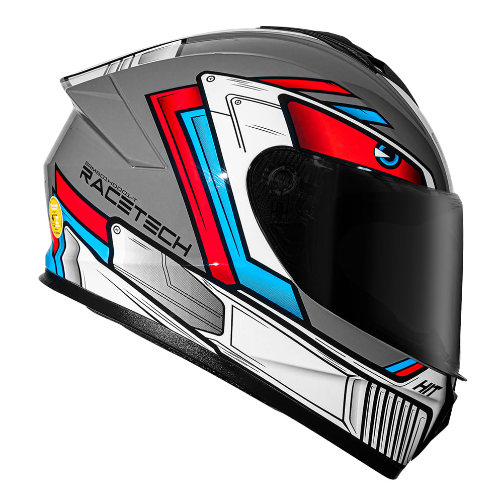 Produto acompanha apenas a viseira Cristal - Foto meramente ilustrativa. Famosas pelas jaquetas de alta qualidade com excelente custo/benefício, a RACE TECH tem o prazer de apresentar o HIT, novo capacete da marca que chega ao mercado brasileiro. Características: • Viseira resistente a riscos, proteção UV, 2,2 MM em policarbonato e troca rápida de viseira; •Entrada de ar inferior, entrada de ar superior e saídas de ar sob o spoiler; •Spoiler integrado; •Abs injetado de alta pressão; •1385 GR +- 50; •Forração removível e lavável, detalhes refletivos, tecido antialérgico; •Fecho micrométrico; •EPS de multidensidade.