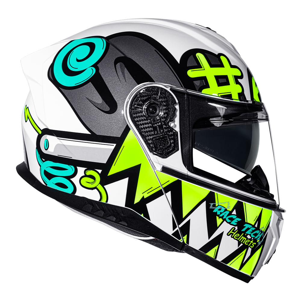 Famosas pelas jaquetas de alta qualidade com excelente custo/benefício, a RACE TECH tem o prazer de apresentar o SIGNAL, novo capacete da marca que chega ao mercado brasileiro. Fabricado em ABS de alta pressão, o SIGNAL tem entradas de ar ajustáveis integradas com o EPS de multidensidade para elevar o conforto do motociclista. Características: • Pesa apenas 1550g (+-50); • A viseira de 2,2 mm recebe tratamento UV e anti-risco para maior vida útil; • O sistema de troca é rápido, visando a praticidade e agilidade necessária no dia a dia; • A forração removivel e lavável recebe inserções refletivas e tratamento antialérgico; • Fecho micrométrico de fácil acesso mesmo com luva. • Eps de multidensidade; • Possui sistema easy fit, preparado para intercomunicador.